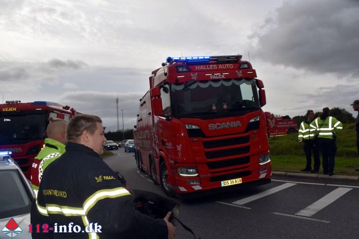 Brandfolk fra stationen i Vejen blev alarmeret klokken 15.46 til mindre forurening ved FUH da dieselolie lækkede fra køretøjet.