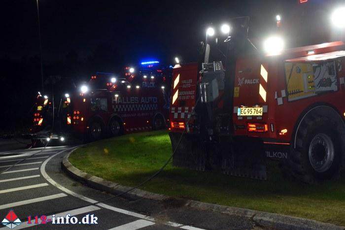 Efter flere forsøg med at rejse vogntoget ved hjælp af flere bjærgningskøretøjer måtte der hen på aftenen tilkaldes en stor mobilkran der så fik køretøjet på hjulene igen.