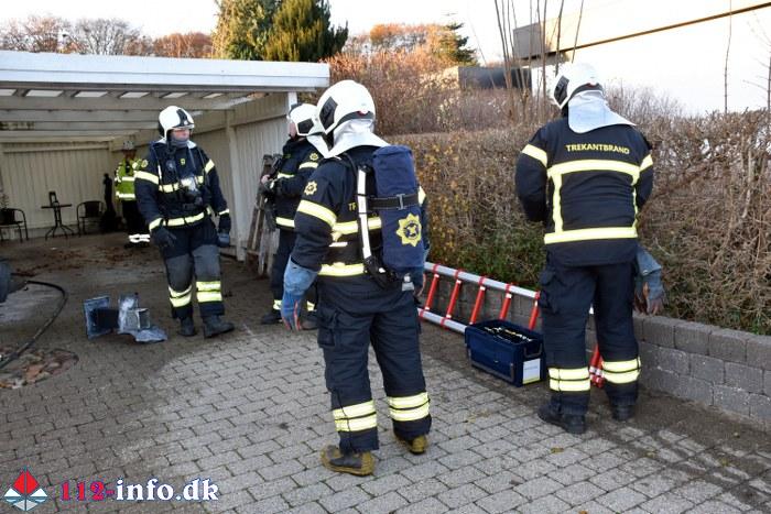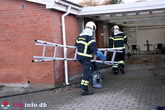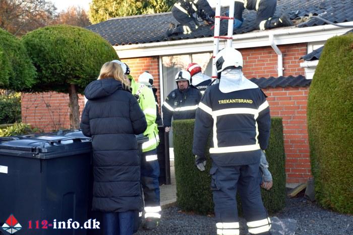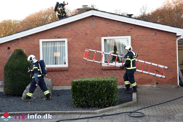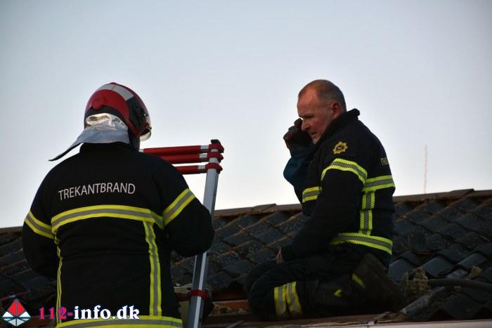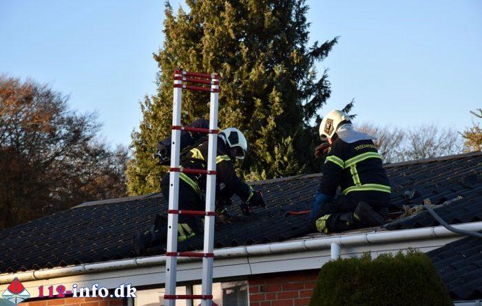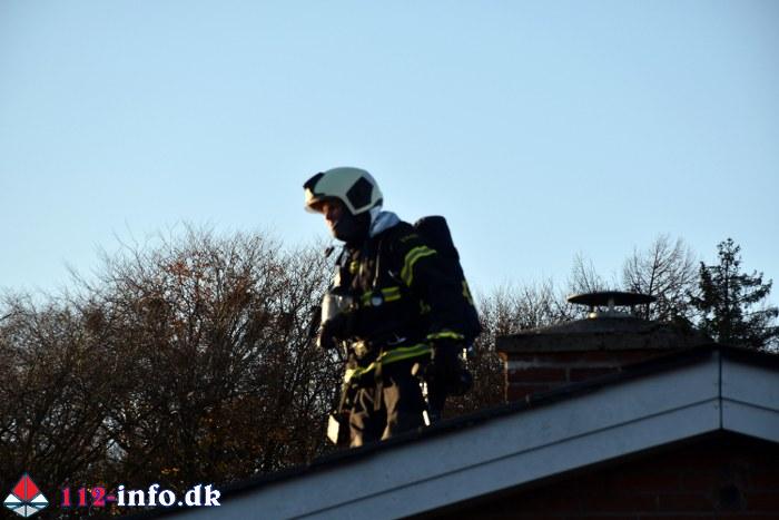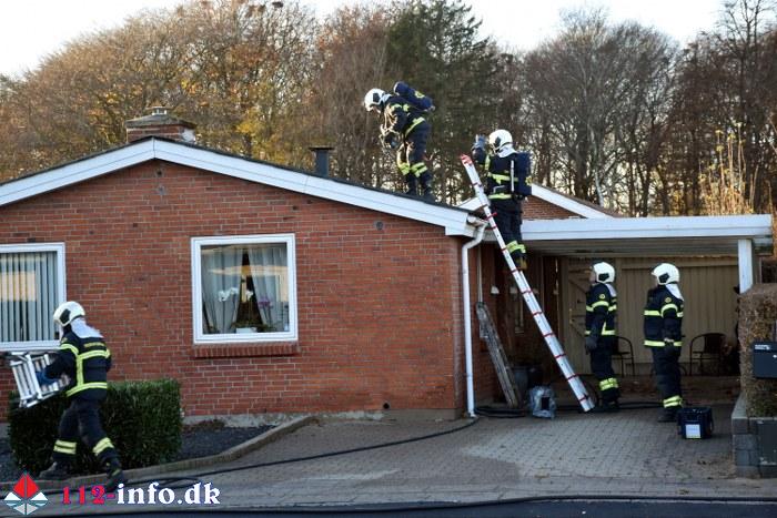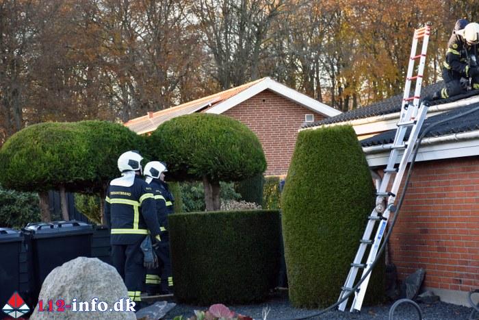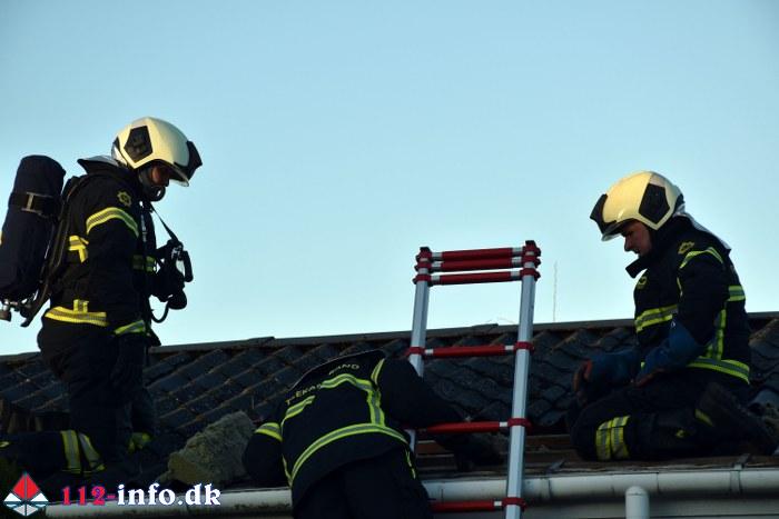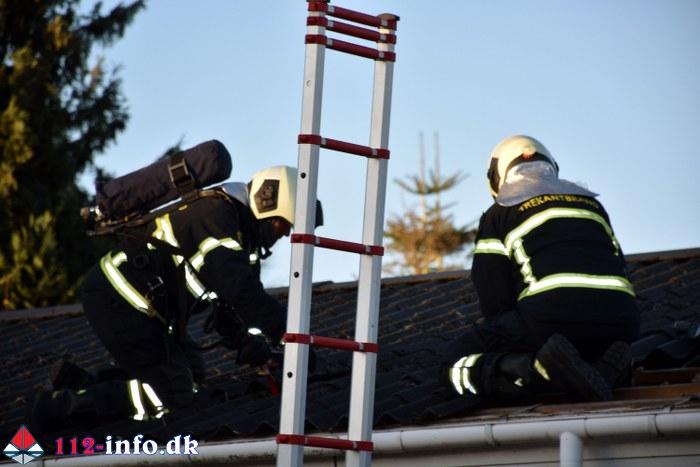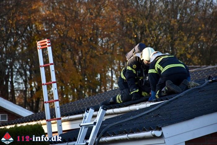 Brandvæsenet var hurtigt på adressen og måtte en tur op på taget hvor de kunne konstatere at der under pladerne var en kortslutning i nogle el-installationer.