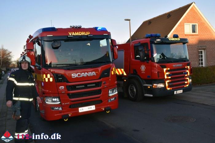 Mandag eftermiddag måtte mandskab fra brandstationen i Vamdrup en tur i bilerne da et alarmopkald kaldte dem til en adresse på Skovborglundvej.