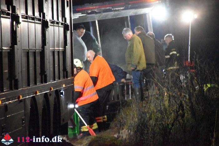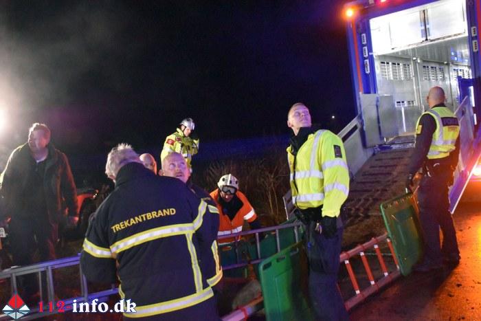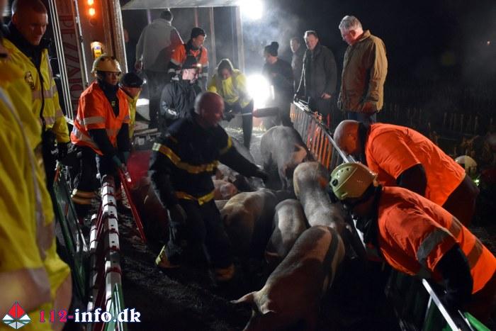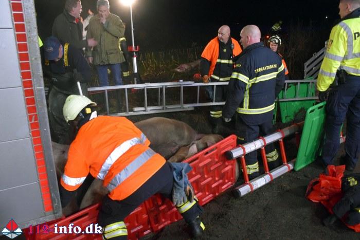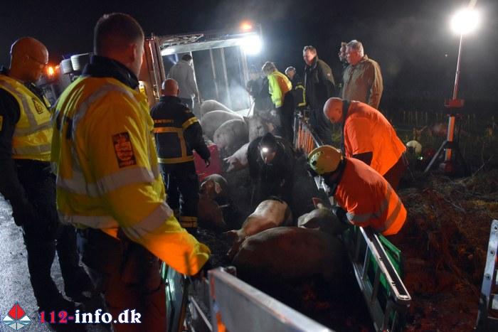 Transporten kørte med 250 store grise der ved uheldet blev smidt rundt i traileren.