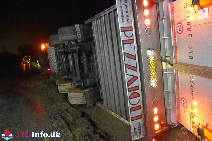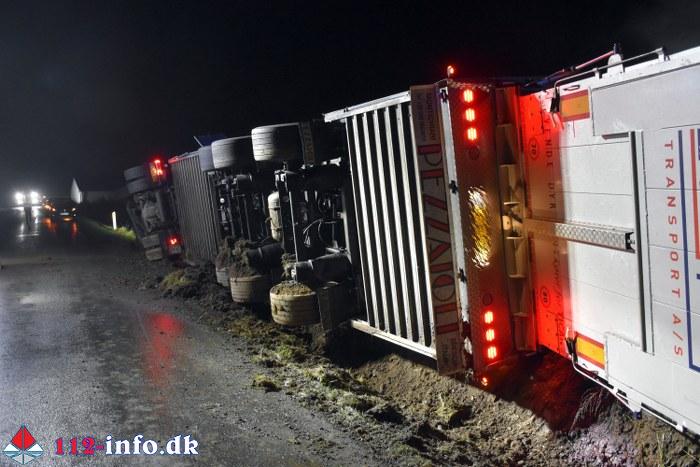 25. Nov. 2025 – Grisetransport Væltede På Tirslundvej Ved Brørup.