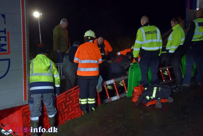 Et ISL-eftersyn blev meldt klokken 18.10 og kort efter blev Falck i Brørup alarmeret og der blev straks sendt Brandvæsen, Ambulance og Politi til stedet.