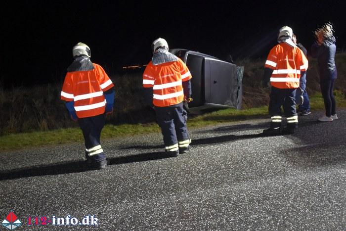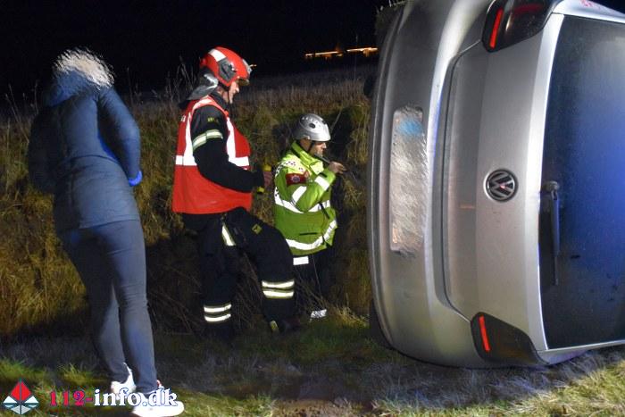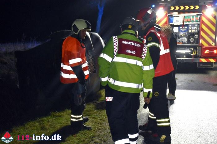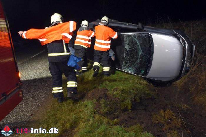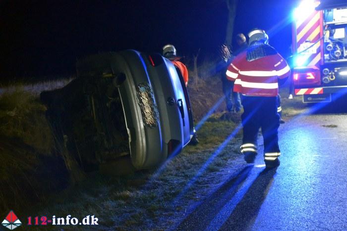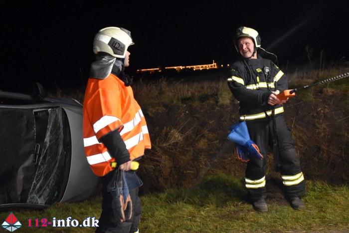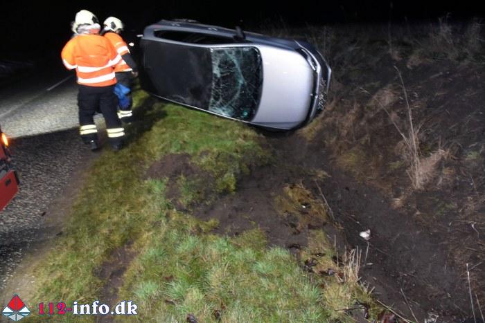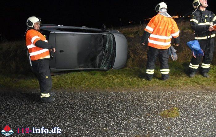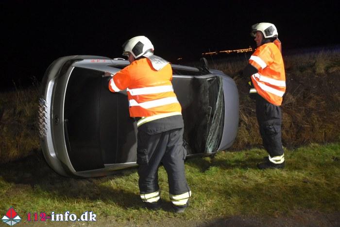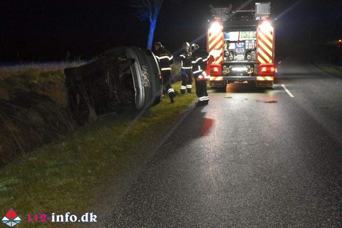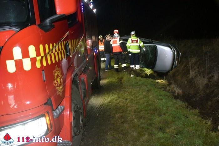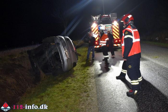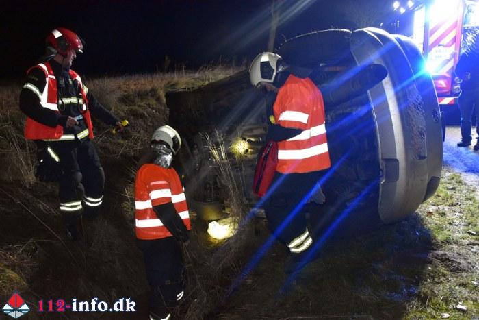 Chaufføren havde selv ringet til alarmcentralen da han var bange for at bilen, der lå på siden, skulle begynde at lække olie i grøften.