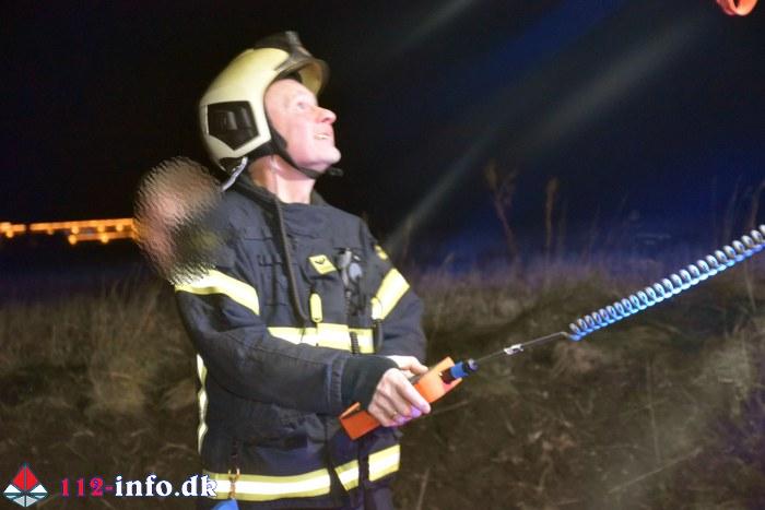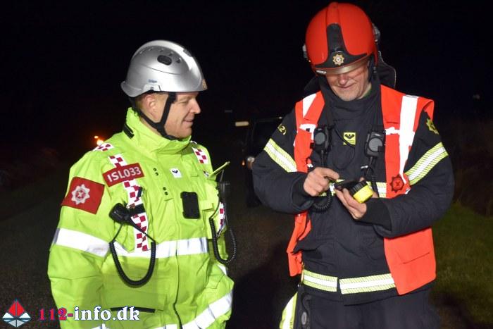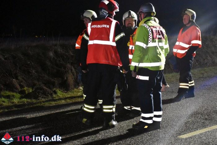 Ved ankomsten så brandfolkene straks at der lå en smadret bil i grøften og en yngre mand gik rundt på stedet.