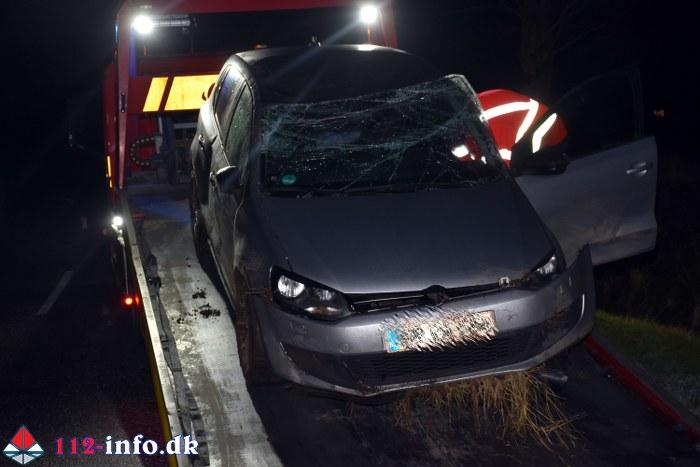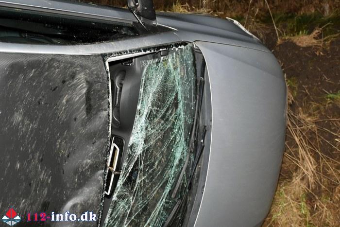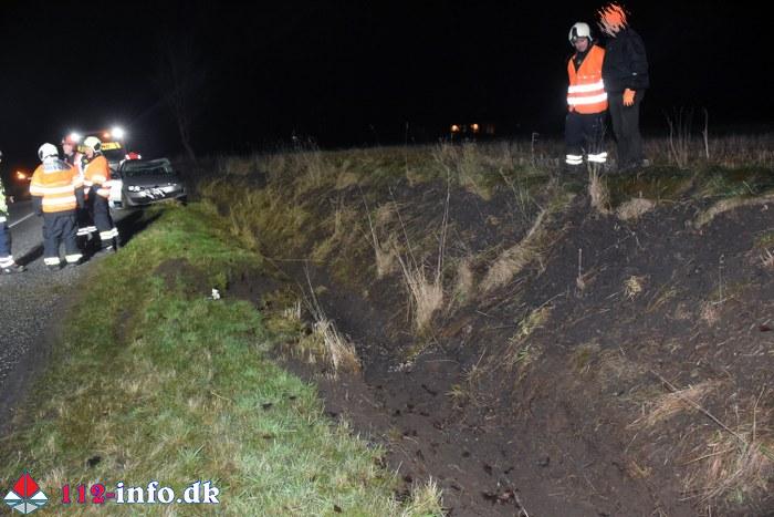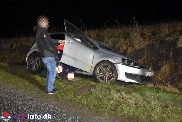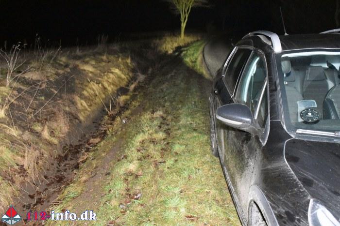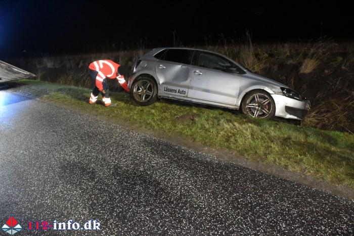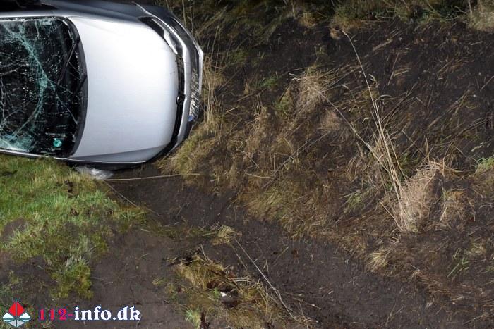 Chaufføren fortalte at han i den bløde vejkurve var kommet for langt ud i rabatten og bilen var herved skredet i grøften.