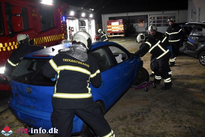 “ Derudover trænes der individuelt på de mange stationer og her i Vamdrup har vi netop afsluttet teori og træning i Kæderedning og derfor kan der lige nu ses flere itu-trukne biler på pladsen foran brandstationen i Jernbanegade “, slutter Jens R. Frederiksen.