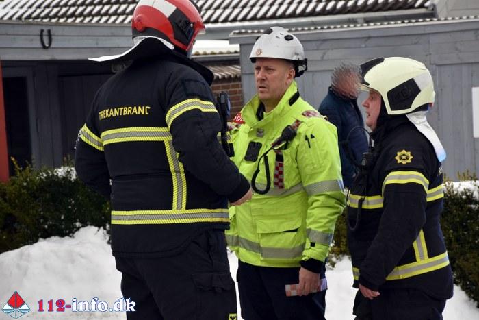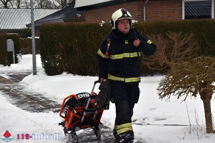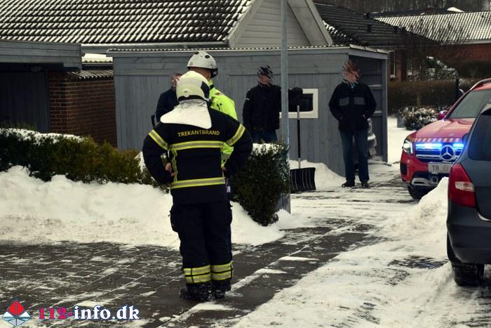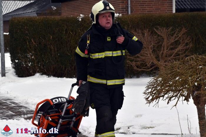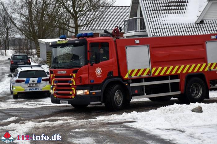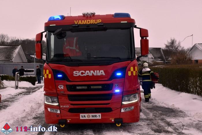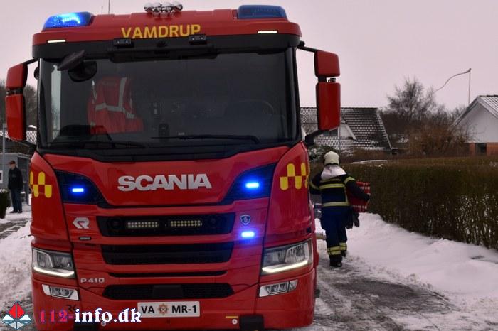 Vamdrup Brand- og Redning blev alarmeret klokken 10.38 til en melding om Bygningsbrand – Villa / Rækkehus på en adresse på boligområdet Højvang Nord.