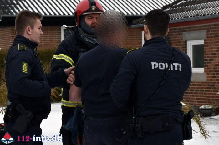 Ejerens hund havde forskanset sig på et værelse men blev hjulpet ud i det fri inden den led skade.