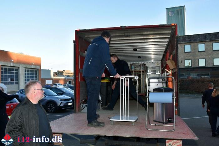 Torsdag aften mødtes omkring tyve af beredskabets friske folk og begyndte tømningen af lokalerne ved Søndre Havnegade for at transportere biler og materiale til den nye store brandstation på Kobbervej i den nordlige del af Kolding.