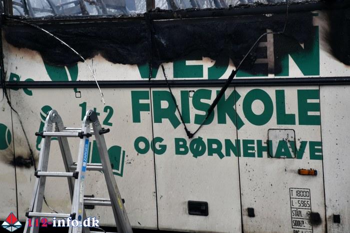 Det stod hurtigt klart at det var skolebussen der stod i brand på dets holdeplads ved skolen.