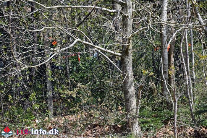Da vores fotograf fredag middag besøgte området arbejdede folk fra Beredskabsstyrelsen atter i krattet hvor kun de orange hjelme var at se.