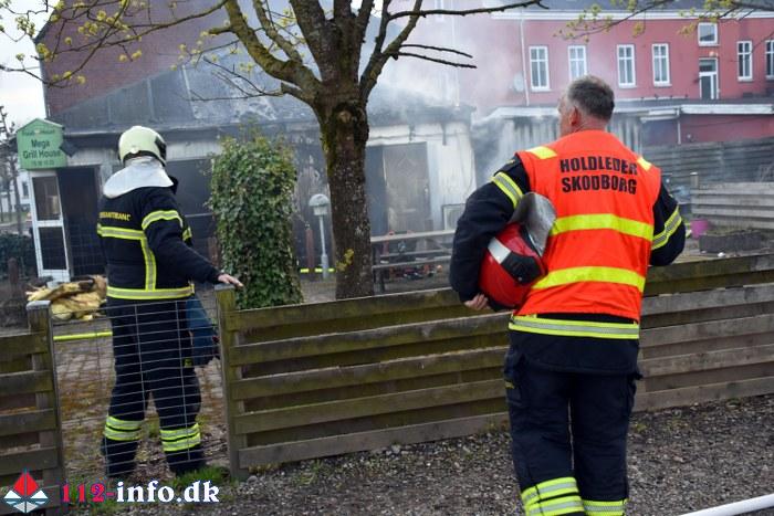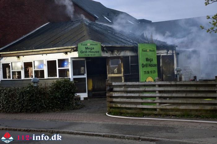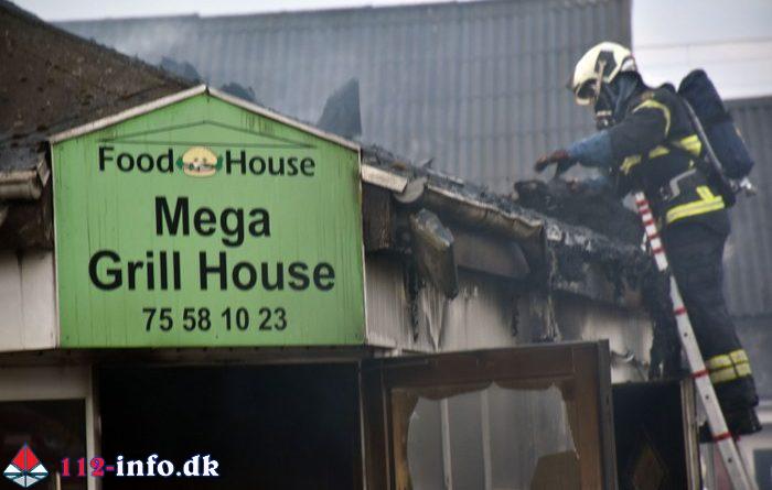 Ved ankomst kunne høje flammer ses kommende fra Mega Grill House.