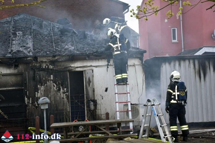 Nabobygningen som grillbaren ligger op ad tog kun mindre skade med sprængte vinduer.