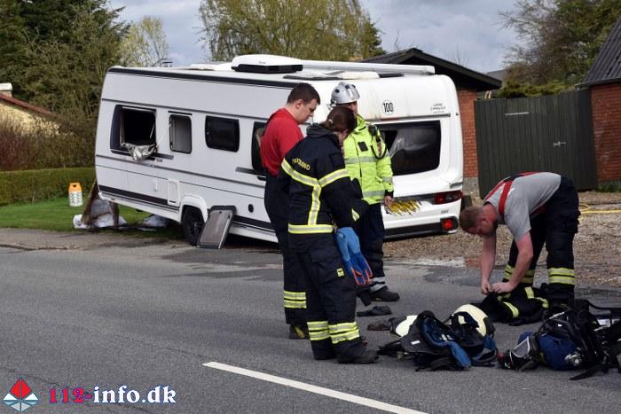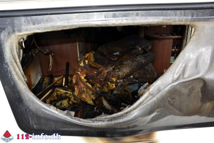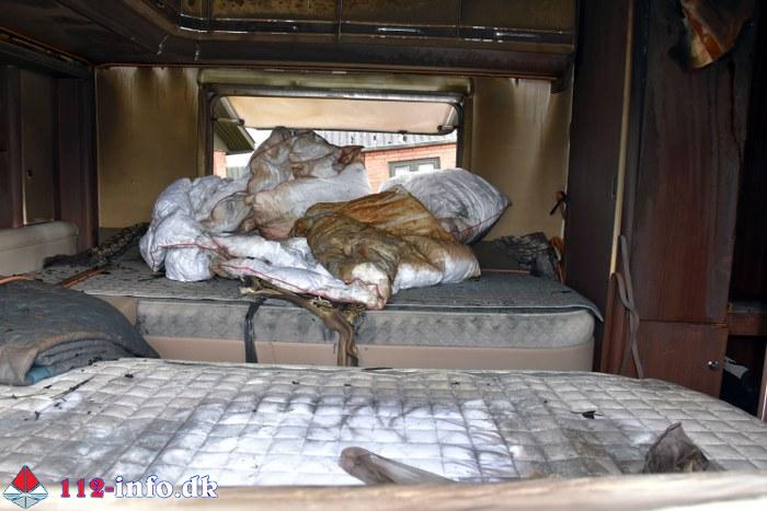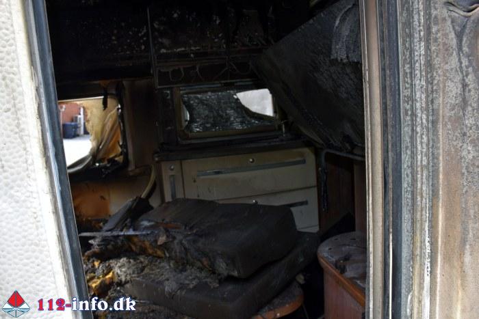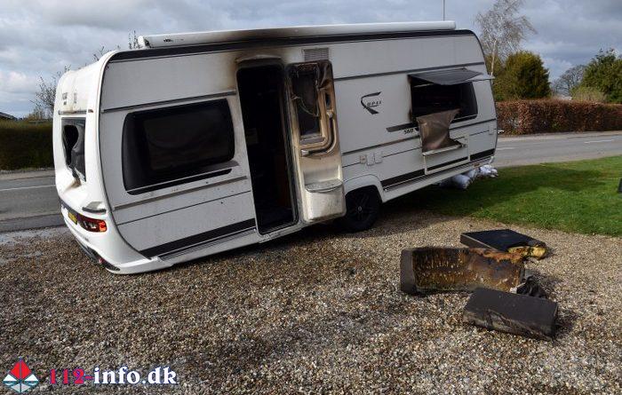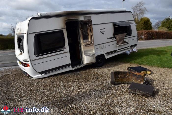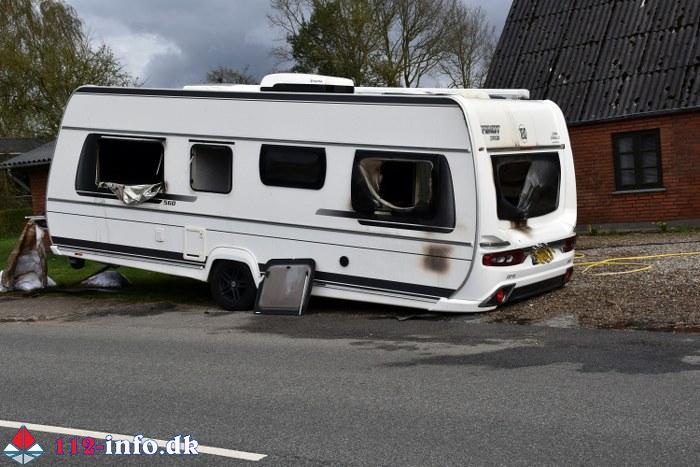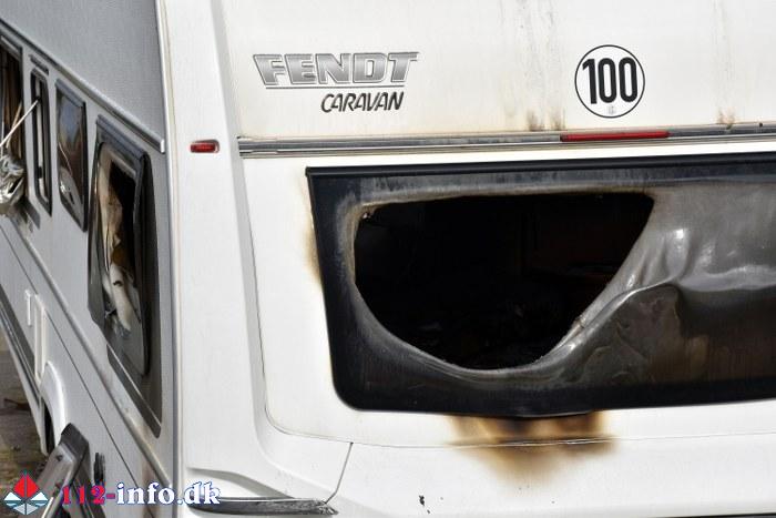 Da mandskabet ankom til adressen kunne man konstatere at der var opstået brand i en nyere campingvogn..