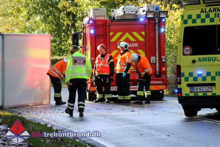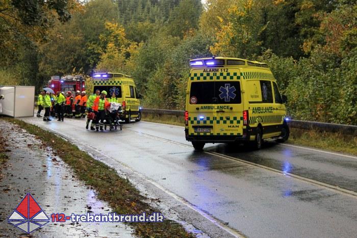 Meldingen lød på færdselsuheld med fastklemte på Hylkedalvej i Kolding.