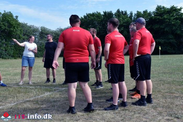 Ved Sommerugen i Stepping stillede de friske brandmænd fra Stepping frivillige Brandværn op til en rundboldkamp mod de lokale lærere torsdag eftermiddag.