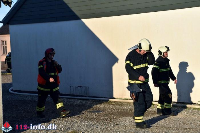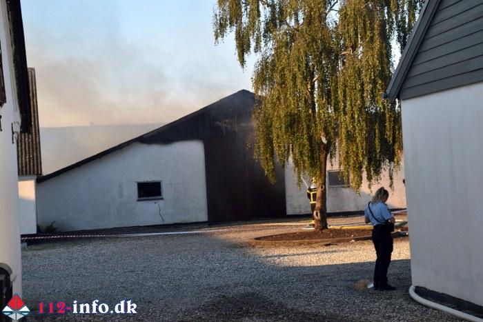 Branden der blev opdaget i en lade med halm var omfattende og der ventede brandfolkene mange timers indsats.