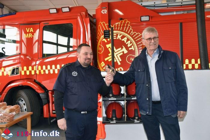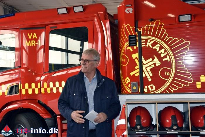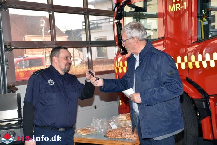 Der var tale ved Beredskabsdirektør Jarl Vagn Hansen og Borgmester i Kolding Kommune Knud Erik Langhoff der senere overrakte nøglerne til det flotte køretøj til stationsleder John Boelck.