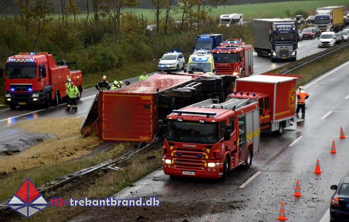 21. Okt. 2021 – Alvorligt Færdselsuheld Hvor En Lastbil Væltede På Motorvejen Ved Christiansfeld.